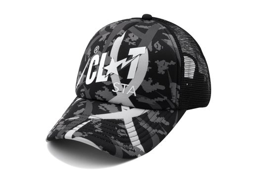 トラッカーキャップは、本コレクションを象徴するカモフラージュ柄を全面に使用し、ストリートウェアらしい力強さを表現したアイテム。