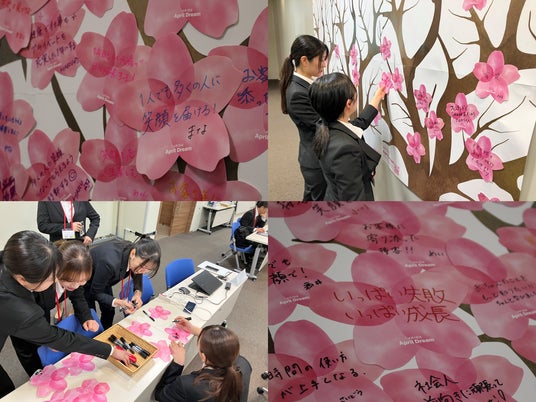 さらに、今年の4月に赤ちゃん本舗に入社した新入社員84名が、桜のカードにそれぞれの夢を描きました。これから社会人となる不安や期待を胸に桜のカードに思いを込めていました。