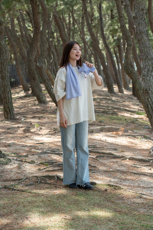 「ふりふり冷感タオルシリーズ」の最大の魅力は、濡らして振るだけで即座に冷却効果を感じられる点です。特に、屋外作業やテーマパークのようなレジャーなど、長時間外で過ごす場所では、冷感タオルを首に巻くだけで体温を効率よく下げ、快適に過ごせます。さらに、軽量でコンパクトなので、持ち運びにも便利。どこでもすぐに冷却効果を得られるため、旅行や外出時に必携のアイテムとして人気です。