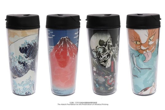 トートバッグやタンブラー、ステッカーセットにも、今回の北斎・国芳のアートを落とし込んだAPE HEADのグラフィックを採用。トートバッグとタンブラーは各4型を展開し、ステッカーセットは、4種類のデザインが1セットになっています。