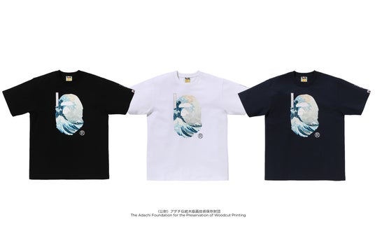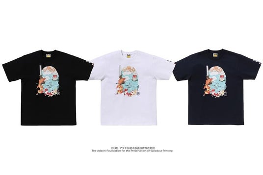 なお、本コレクションにおける浮世絵作品は、公益財団法人アダチ伝統木版画技術保存財団(The Adachi Foundation for the Preservation of Woodcut Printing)の監修のもと、制作されました。伝統木版画の継承と普及に取り組む同財団との協業により、歴史的な名作がBAPE(R)のプロダクトとして新たな表情を纏いました。