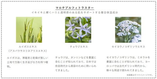 【複合保湿成分】マルチプルフィトラスターハリと透明感のある肌を叶えるために、独自研究に基づいた複合保湿成分「マルチプルフィトラスター」を配合。