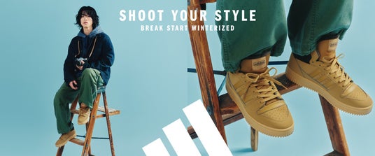新ビジュアルでは、少し厚みのあるカーゴパンツやネルシャツを使用したワークスタイルに、ブーツルックのスニーカーを合わせた秋冬ストリートスタイル。90年代の流行を彷彿とさせる、ヒップホップをはじめとしたOラインシルエットに、当時から暖かさや履き心地がアップデートされたボアライナー、「BREAK START WINTERIZED」を合わせ、1日歩いても軽やかなスタイルを提案します。カーキのカーゴパンツやデニムスタイルに落ち着いたブラックカラーを合わせ、大人な印象を与えたり、ベージュで遊び心を残しつつより当時のスタイルに近づけることもできる万能シューズです。また、同系色でまとまりのあるコーデを組めるオリーブカラーも用意しており、この秋冬に自由にファッション楽しめる一足です。