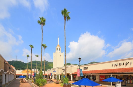 国内外の人気ブランド約 170 店舗が揃う九州を代表するショッピングリゾートです。アメリカ・カリフォルニア州南部の街並みをイメージし、そびえ立つヤシの木に、白壁や暖色系の屋根瓦、タイル模様が美しい施設で、一日中アウトレットショッピングをお楽しみいただけます。