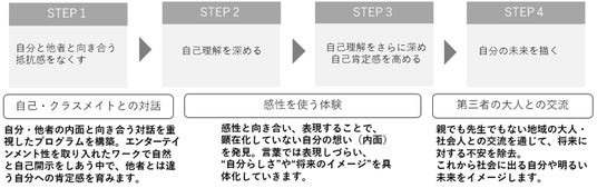 本プログラムは、不確実なこの時代に生徒が自信をもって自らを導いていくために、美意識(自分の想い・自分の軸)の種を探しながら自己理解を深めるとともに、非認知能力を育成することを目的としています。