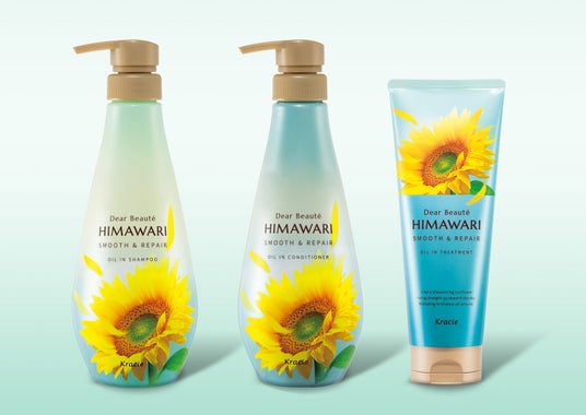 共通特長成分「プレミアムヒマワリオイルEX」配合で、髪ゆがみの原因を髪の内部と外側からトータルケアする「ディアボーテHIMAWARI」。「オイルイントリートメント」は、「高機能ひっぱりケア」を採用し、ブラッシングなど日常のひっぱりによって起きるゆがみをケアします。また、「湿気ケア」もできるので、湿度が高まる夏季に向け、デイリーケアとして取り入れていただくのもおすすめです。