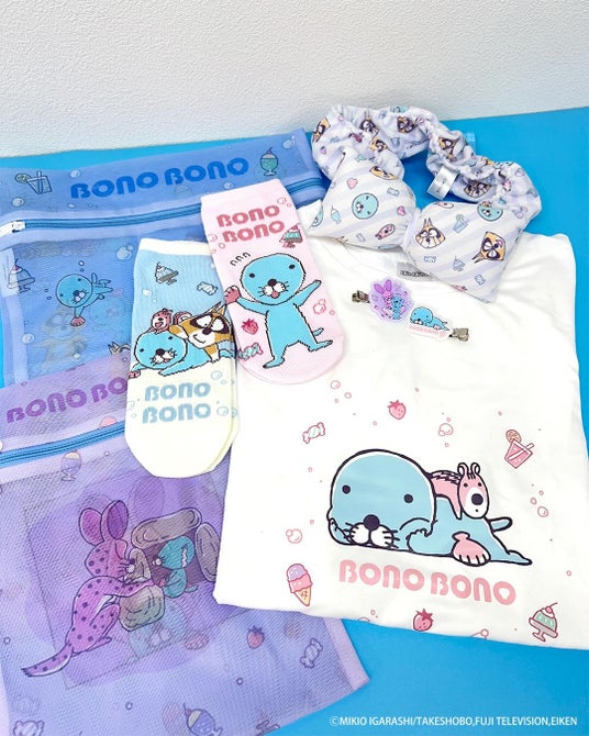 子どもから大人まで『ぼのぼの』を愛するファンの方々に手に取ってもらえるよう、「洗濯ネット」や「前髪クリップ」など自宅で使えるアイテムから、「Tシャツ」や「ソックス」などファッションアイテムまで、幅広いラインナップで展開します。