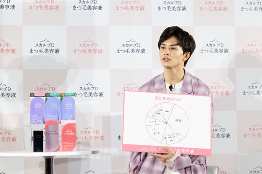 続いて、話題は「スカルプDまつ毛美容液」の商品に関する話に。司会から、長いまつ毛と、短いが密度のあるまつ毛のイラストを比較し、草川さんが魅力を感じる目はどちらか質問したところ、草川さんは密度のあるまつ毛を選択。日頃から人の目をよく見ているという草川さんは、「会話している時は、必ず目は見るように意識していますが、まつ毛の密度とか長さはそこまで気にしたことはなかったですし、こうやって見ると印象が全然違いますね!」とコメントしました。