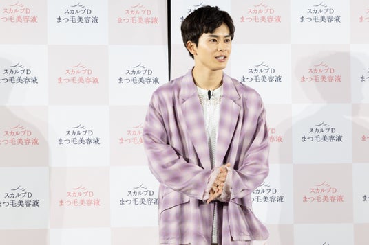 ■草川拓弥さんが「スカルプDまつ毛美容液」のテーマカラーである、ピンク色のジャケットで登場!