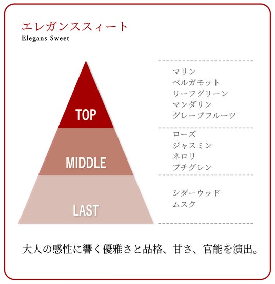 時空を超えるマインドフルネスな香りは、大人世代の女性の一日を、輝く、ハツラツとした境地へと高めます。