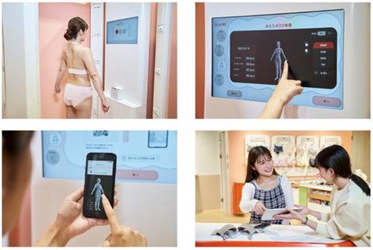 2019年5月より開始している3D計測サービスは[SCANBE]店舗含め全国27店舗で実施しており、2025年5月時点で延べ30万人に体験いただいています。キッズやジュニア、マタニティ(妊娠中・産後1年以内)モードにも対応しています*³。2023年10月には、3D計測結果から10分でからだに合ったブラジャーのタイプがわかる[わたしに合うブラ診断]を、2024年3月にはセルフでAIによる骨格診断が受けられる[SCANBE]初の有料サービス[わたしを知る骨格診断]を提供開始しています。