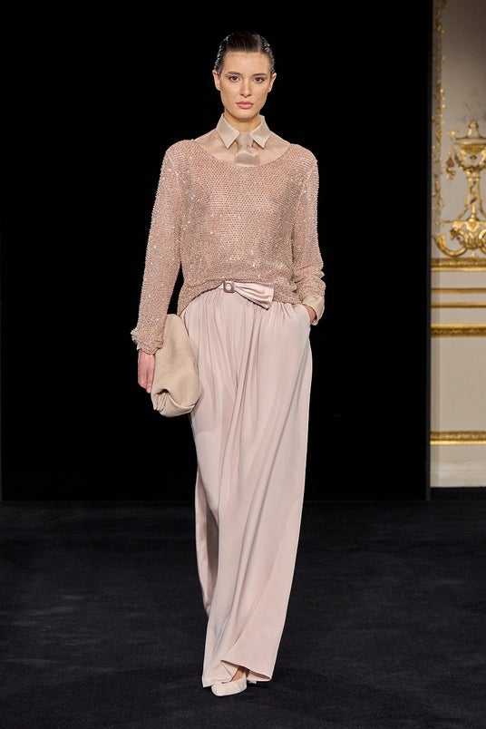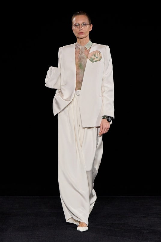 一貫性を保ちつつも独自性を感じさせる表現は、理想を追い求めながらも現実に根差した雰囲気を醸し出し、ジョルジオ アルマーニ プリヴェの新しい時代の始まりを静かに示します。