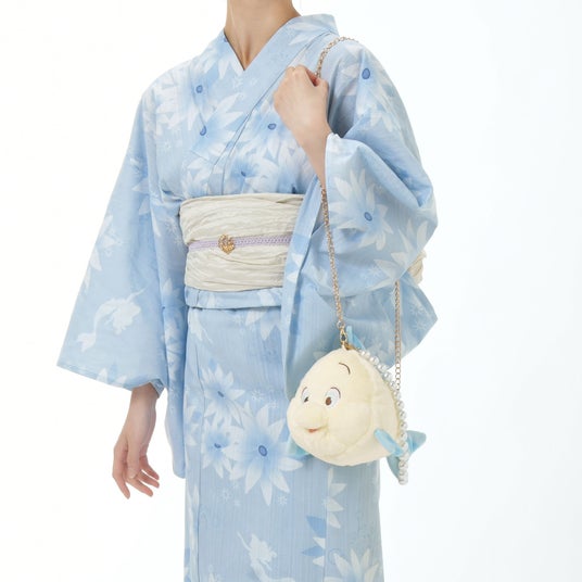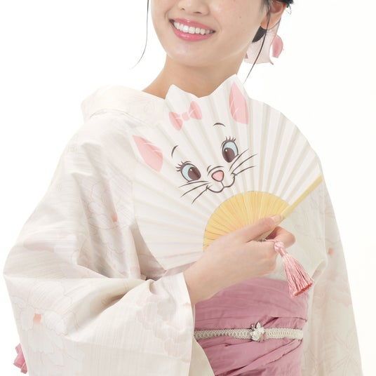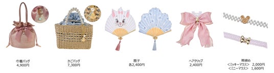 ラインナップは、キャラクターをさりげなくあしらった上品な浴衣をはじめ、帯締めやバッグなど、きらめきを添える小物も登場。トータルコーディネートをお楽しみいただけます。レース素材を用いた巾着バッグは、大きなリボンとマリーのチャームがアクセントに。アリエルとフランダーをデザインしたかごバッグは、パールビーズのハンドルが華やかさを一層引き立てます。そのほか、和装、洋装どちらにも合わせやすい扇子やヘアクリップなども展開。細部までこだわったデザインで身に着けるだけで気分が高まるアイテムが揃います。