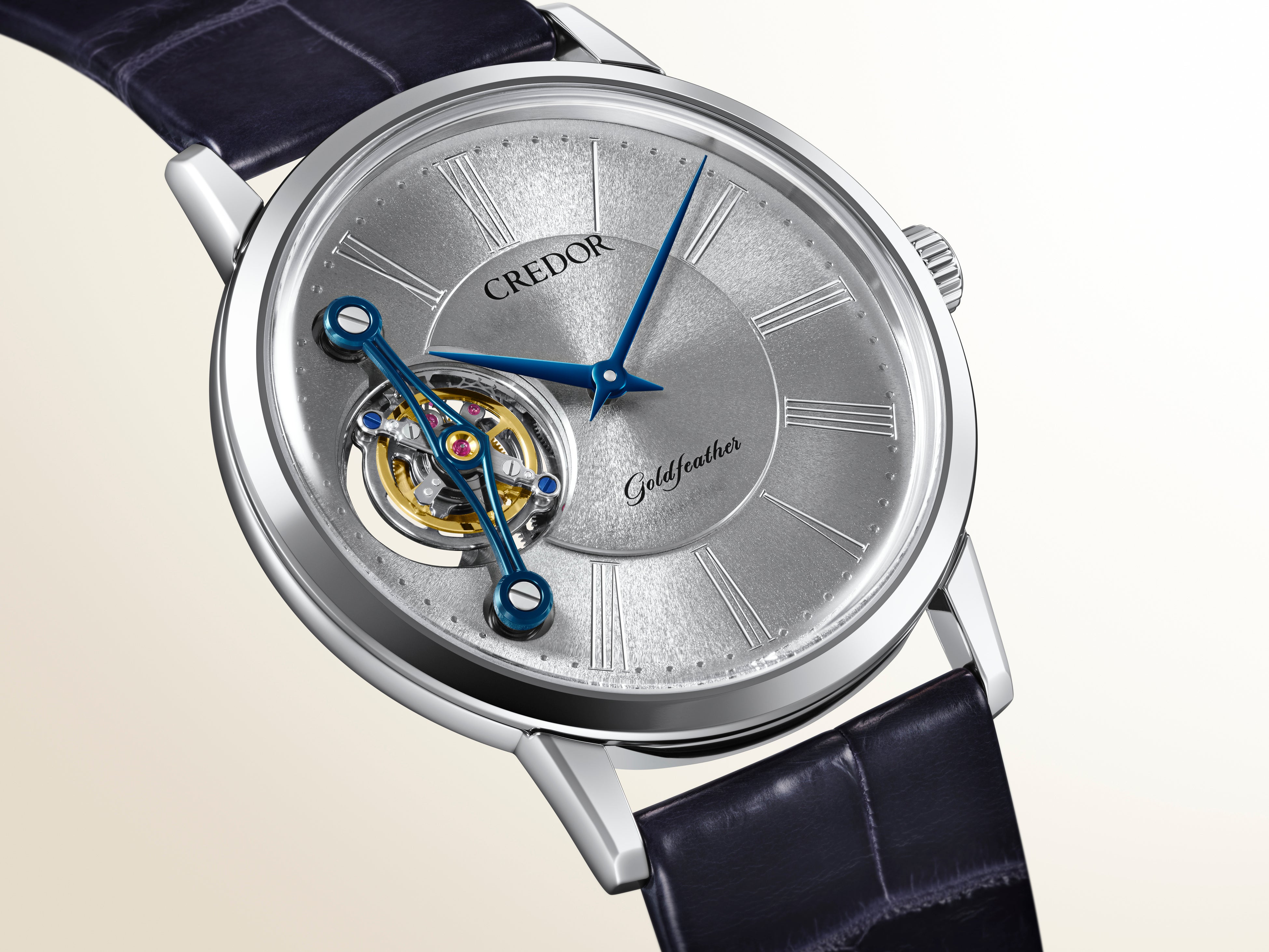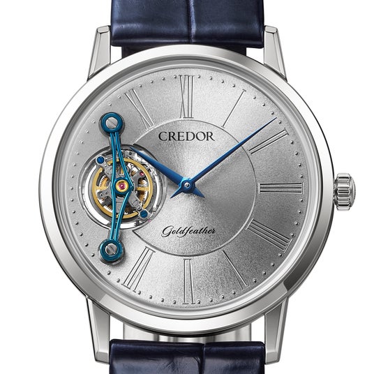 セイコーの薄型メカニカルウオッチの先駆けであり、2023年にクレドールの名のもとに蘇った「ゴールドフェザー」は、クレドールを代表する、高級薄型ドレスウオッチです。羽根のように「薄く」、「軽やかで」、「空気をはらみ」、「艶やかで」、「優美」であることをデザインコンセプトとし、現代のドレスウオッチとしてふさわしいスペックとデザインにアップデートしています。