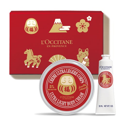 保湿の王様と呼ばれるほど高い保湿効果を誇る「シアバター」を20%配合し、過酷な冬の乾燥から手肌をうるおいで満たす「シア ハンドクリーム」。ブランドを代表するアイコン製品であり、自分のケアにはもちろん、ギフトにも喜ばれています。この「シア ハンドクリーム」と、すっと肌になじみしっかり保湿する淡雪のようなテクスチャーが特徴の「スノーシア ボディクリーム」を、干支の午や招き猫など、福を招く縁起モチーフの華やかな限定デザインであしらい、ギフトボックスにセットしました。新春のご挨拶や、大切な方へのギフトにもおすすめです。
