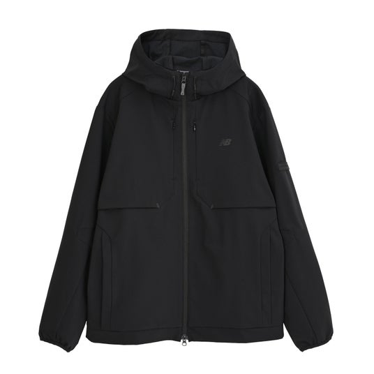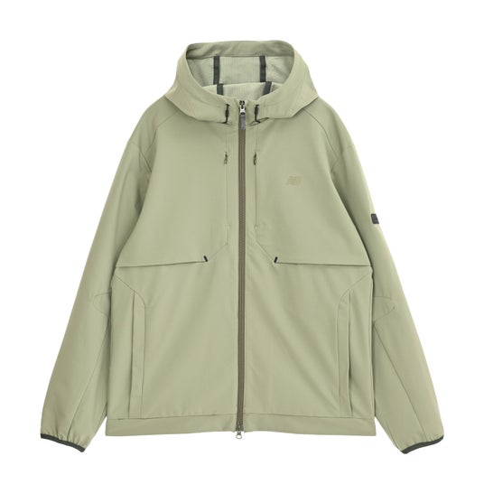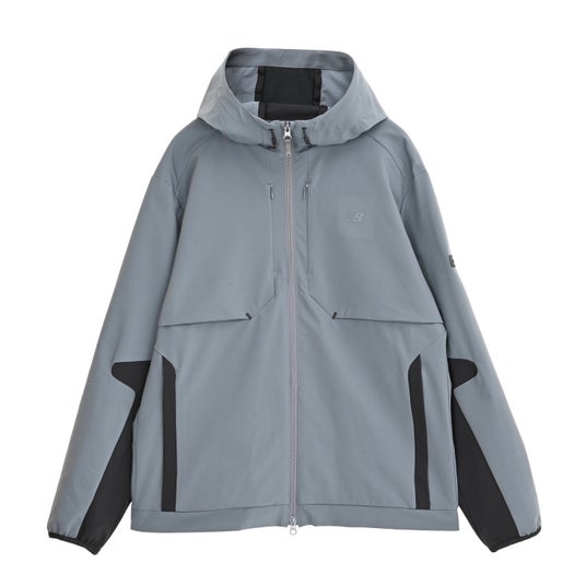 ストレッチ性の高い二重織素材を使用したフーデッドジャケットです。カッティングデザインやダブルファスナー、New Balanceのロゴが入ったラベルがポイントで、デイリーユースにもスポーツシーンにも最適な一着です。