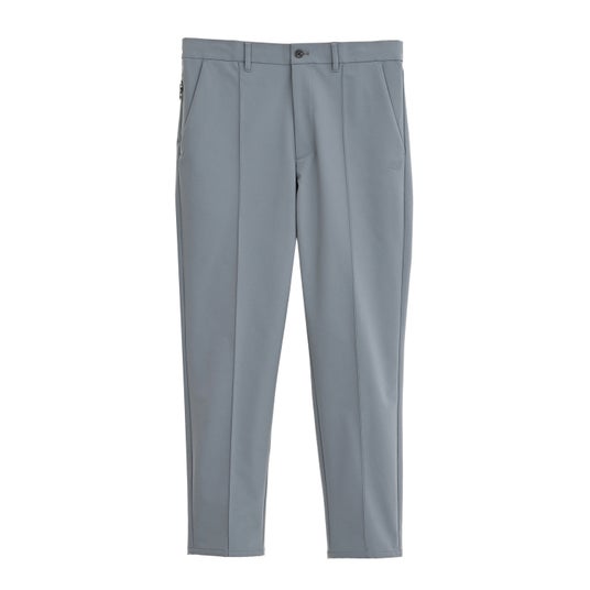 二重織素材を用いたスリムテーパードパンツです。ピンタック仕様ですっきりとしたシルエットを実現し、右脇にはファスナー付きのセキュリティポケットも備えています。