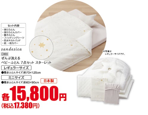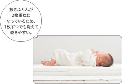 セット内容がすべて洗える(※)、日本製にこだわったふとんセット!お洗たくの手間を軽減する防水キルトパッド入り。