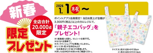 当日お買上げ金額が3,300円(税込)以上の方にレジにて、「親子エコバッグ」をプレゼントします!