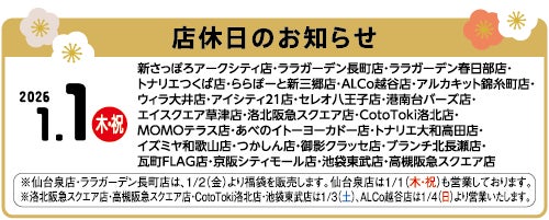 ※年始の営業につきまして、詳しくは各店舗ホームページをご確認ください。