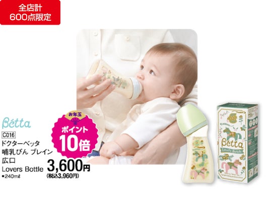 新春限定プレゼントや、ベビーカー・抱っこ紐・ふとんセットなどの出産準備アイテム、楽しく遊べるおもちゃなどを新春特別価格でご用意しました。午(うま)年にちなんだ干支柄おしりふきも取り揃え、皆さまの子育てをサポートします。