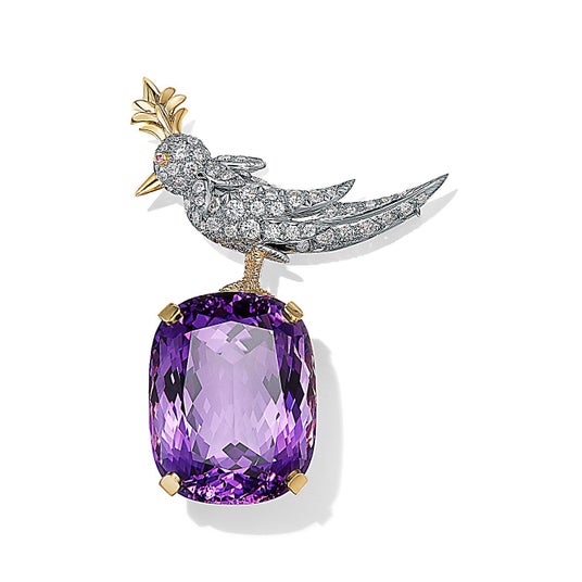 Jean Schlumberger by Tiffany & Co. Bird on a Rock brooch in platinum and 18k yellow gold with an amethyst of over 52 carats, white diamonds and a pink sapphire