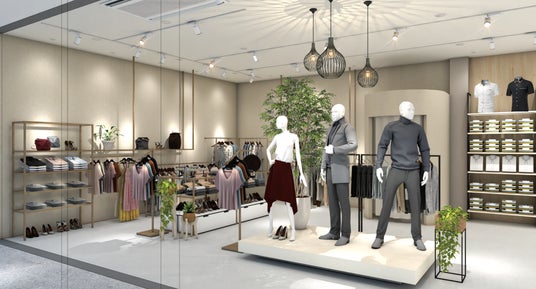 フォーエル広島八木店は、「大きいサイズのセレクトショップ」として、従来の店舗では見られない新しい空間設計を導入しました。内装やディスプレイ、売場レイアウトにこだわり、来店者が楽しく快適にショッピングを楽しめる環境づくりを重視しています。また、男性の商品比率を8割に設定し、カジュアルウェア、ビジネスウェア、フォーマルウェア、礼服から雑貨、靴、下着まで多彩なアイテムを取り揃えています。