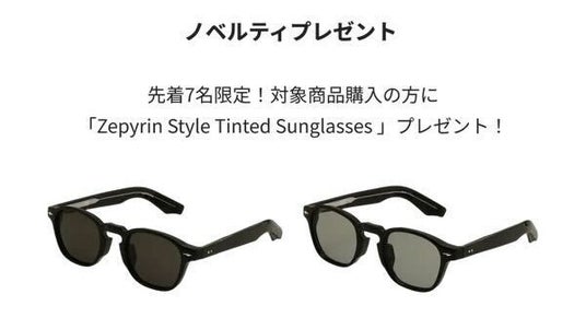さらに、本キャンペーンを記念して、対象条件を満たしたお客様へ先着で「ゼピリンスタイルティンテッドサングラス」をノベルティとしてプレゼントいたします。