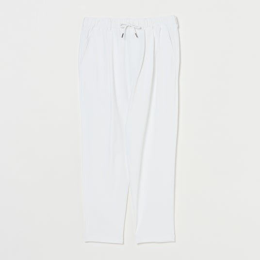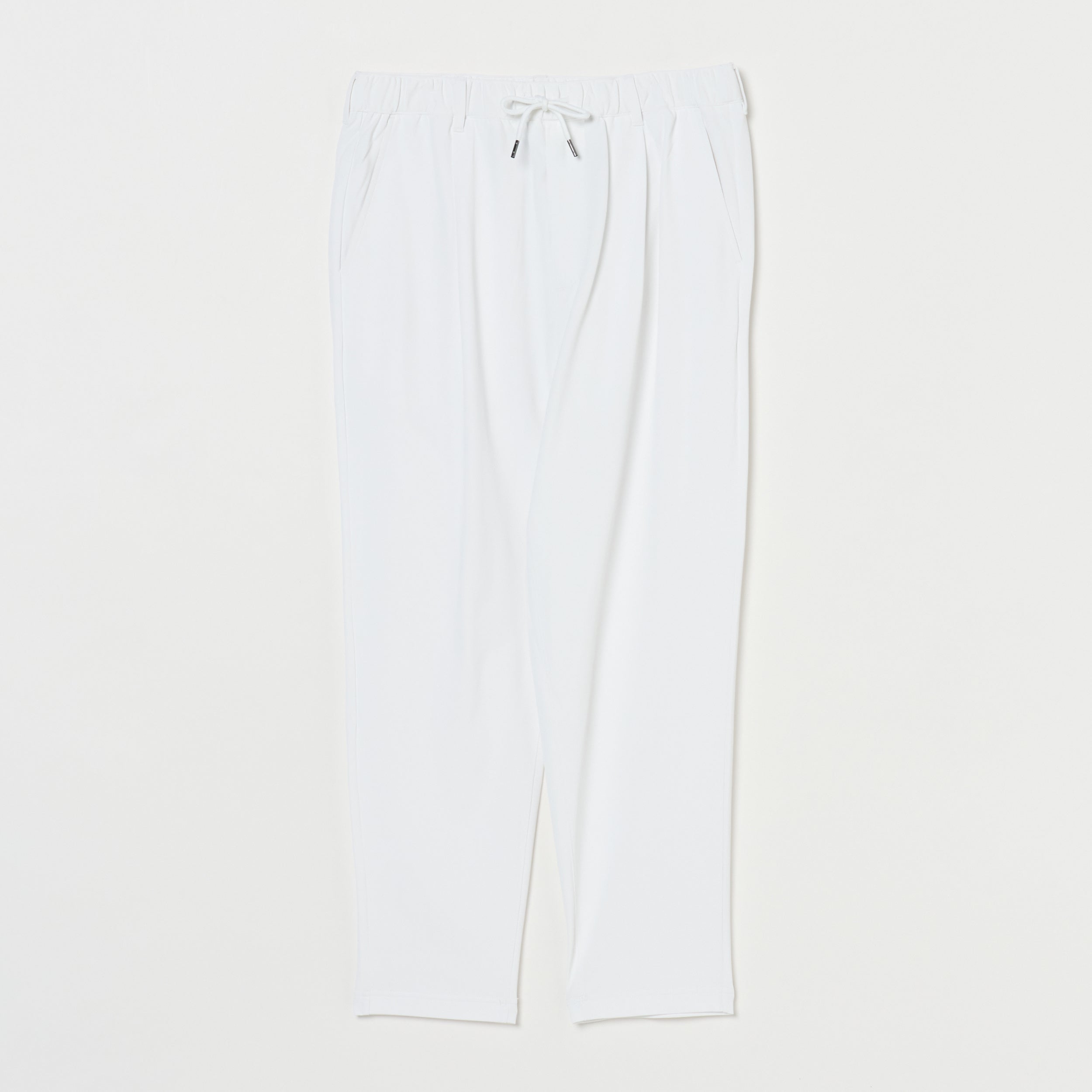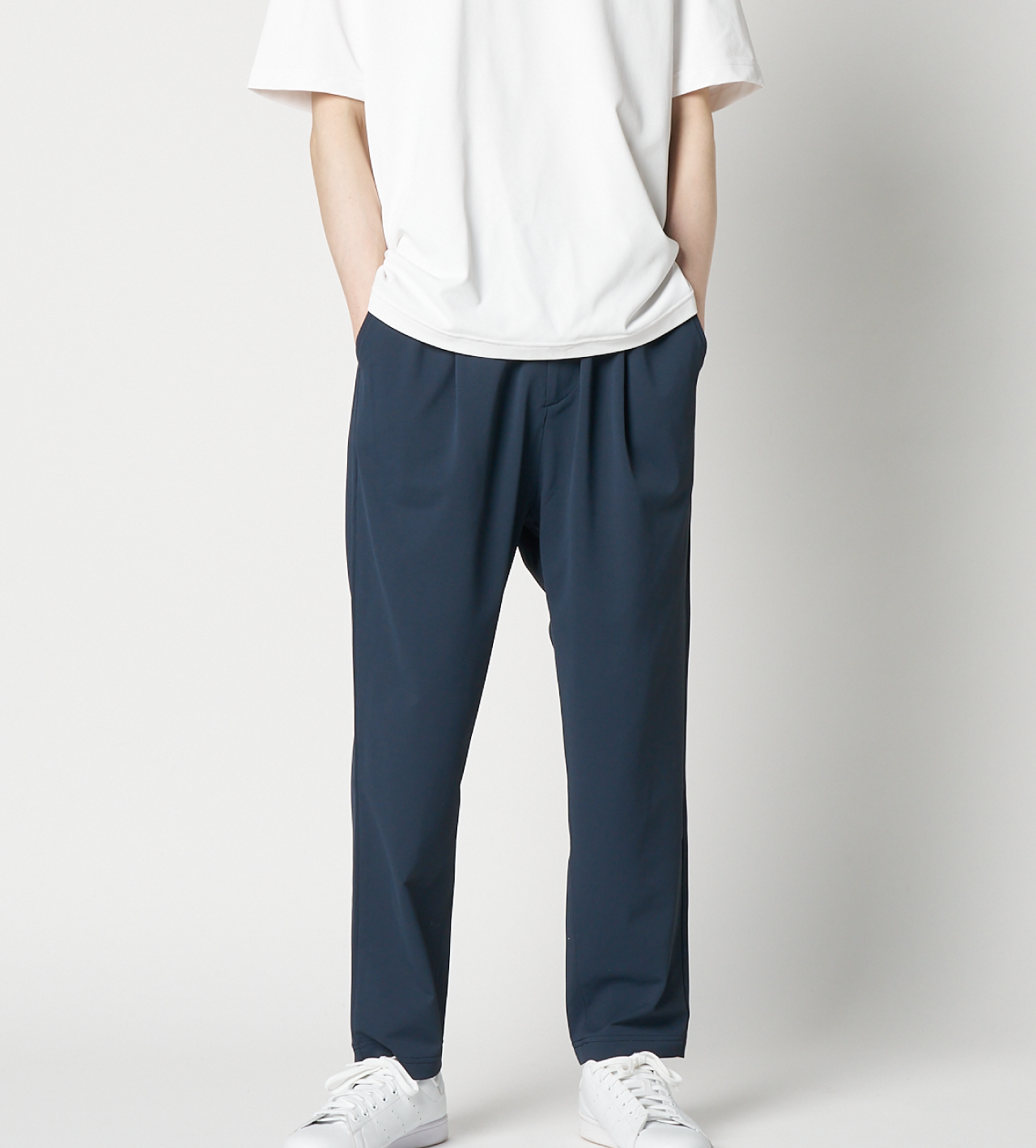 イージーパンツは、テーパード仕様で、ビジネスからカジュアルまで幅広いシーンで対応可能。また、内側・外側どちらでも結べるドローコードと、柔らかなウエストゴム仕様で快適な穿き心地にこだわりました。