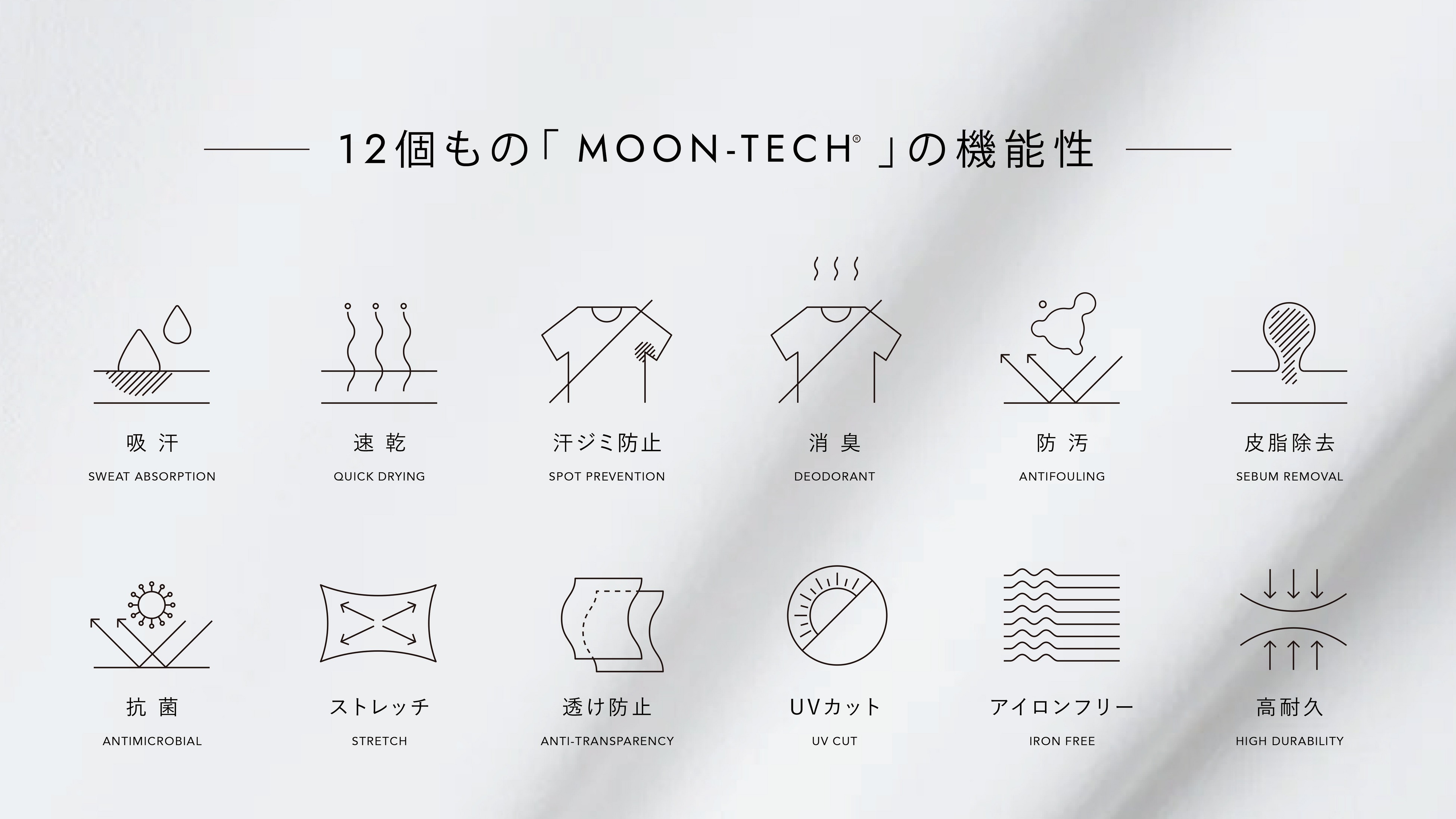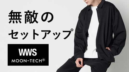 両商品には、汗ジミ防止・吸汗速乾・消臭・防汚・抗菌・皮脂除去など12個もの高い機能を搭載した「過剰なほどの機能性」を持つ「MOON-TECH(R)」を使用。圧倒的な機能性とデザイン性で、あらゆるシーンで活躍するセットアップです。2026年3月10日(火)からWWS公式オンラインストア・WWS直営6店舗*・MOONRAKERS公式オンラインストアにて一般販売を開始いたします。