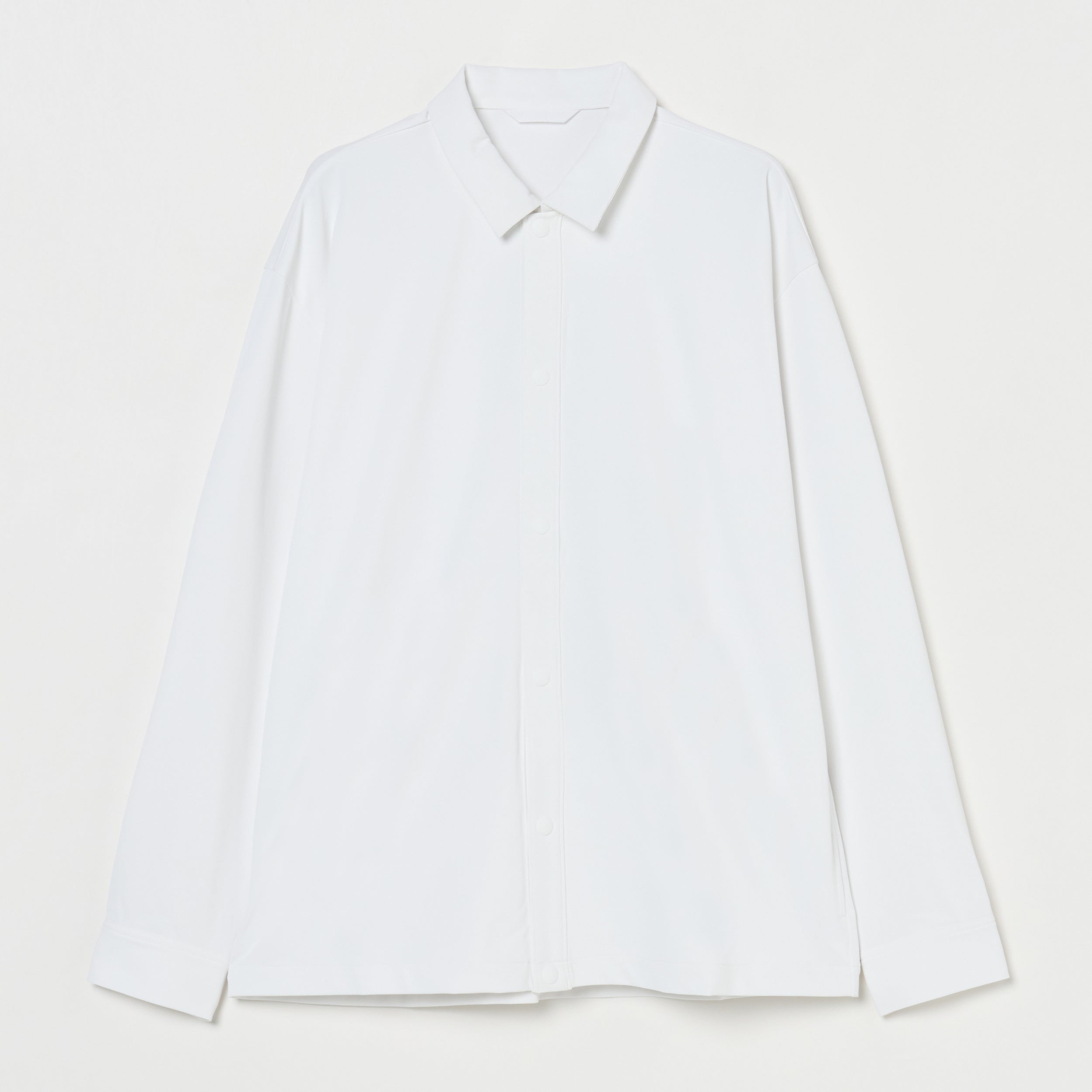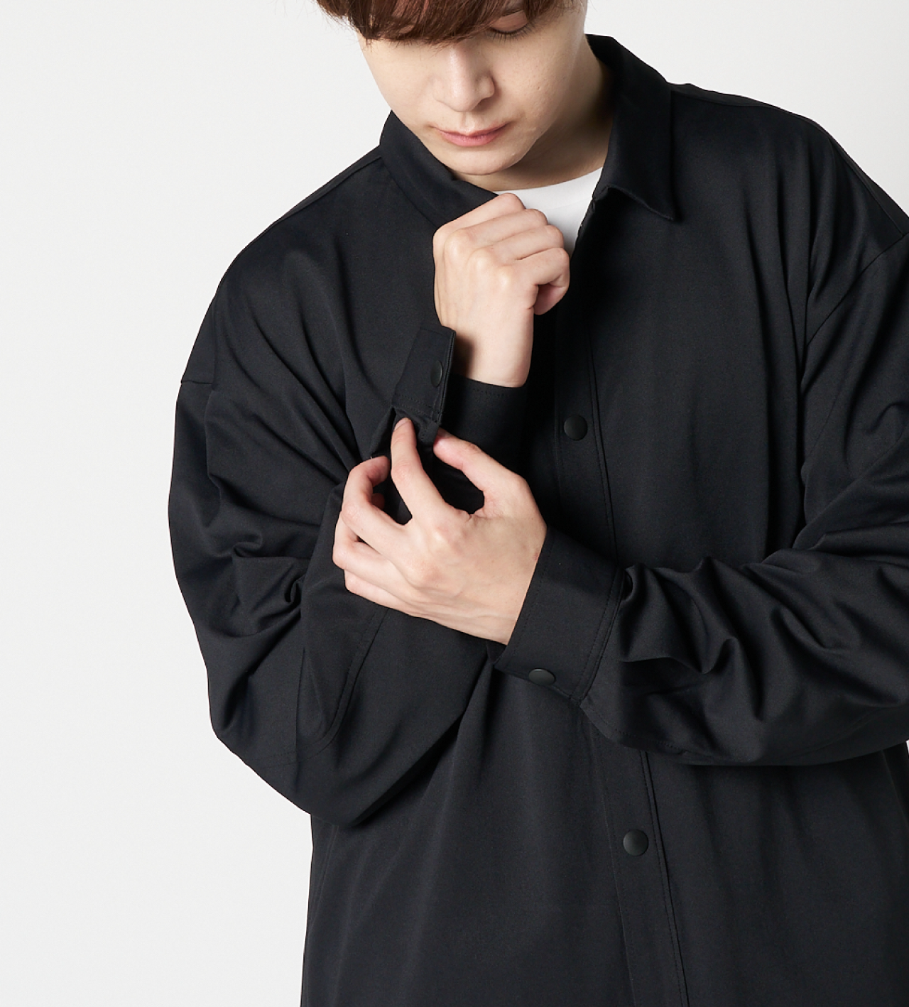 シャツブルゾンは、ボックスシルエットで、リラックス感とスタイリッシュさを両立。スナップボタン仕様でストレスフリーな着脱を実現。両サイドにも大きめポケットを採用し、シャツながら抜群の収納力を実現しました。