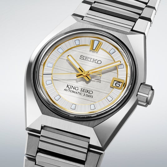 <キングセイコー>は、1961年に誕生し、1960年代の国産機械式腕時計の進化を牽引したブランドです。2022年に、約50年ぶりに復活した<キングセイコー>は、その名にふさわしい性能と風格のあるデザインで、国産機械式腕時計としての新たな魅力を放ち続ける、セイコーのハイエンドメカニカルウオッチブランドです。