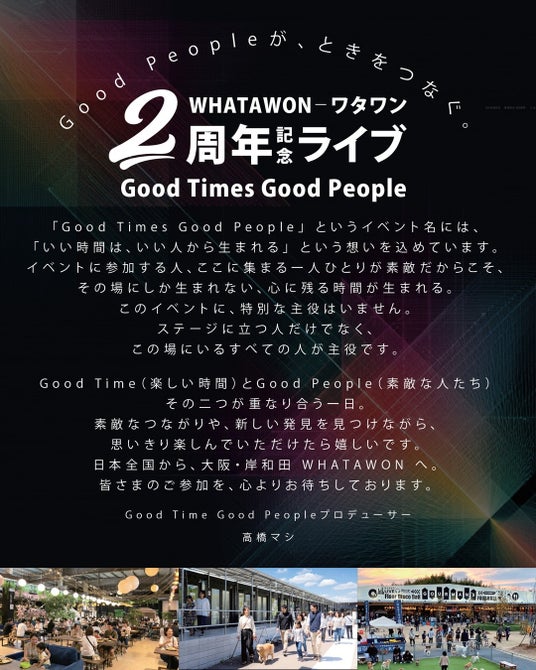 人と人、カルチャーとカルチャーがつながり、新しい“GOOD TIME”が生まれる3日間です。