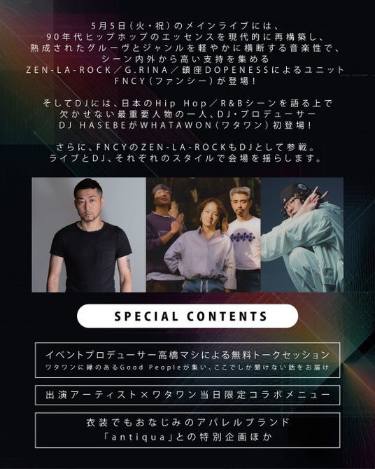 音楽を軸にグルメ、ファッション、カルチャーが交差する、ワタワンならではのアニバーサリー・フェスです。