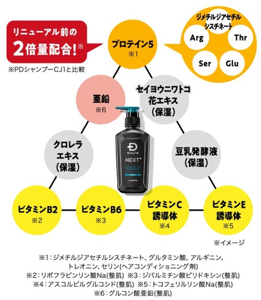 2.厳選サポート成分で地肌から髪を変える※8髪を構成するアミノ酸上位5種を独自バランスで配合した「プロテイン5エキス※9」で髪を保湿・補修。また、8種の厳選成分が地肌のコンディションを整え、スタイリングしやすいベースへ。