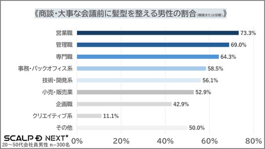 3.商談・大事な会議前に髪を整える男性は58.0%(174人)!職種を問わず髪型への意識が高いことが明らかに
