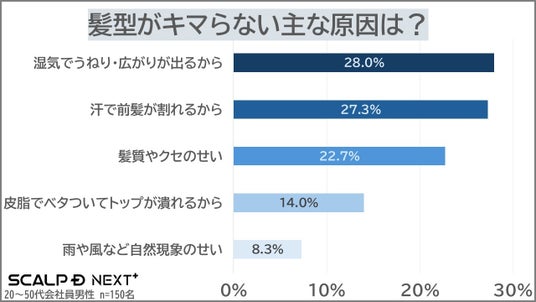 1.記録的猛暑が9月まで継続予想!髪悩みを抱えるビジネスマンは約2人に1人、「湿気でうねる・広がる」(28.0%)、「汗で前髪が割れる」(27.3%)が2大要因に!
