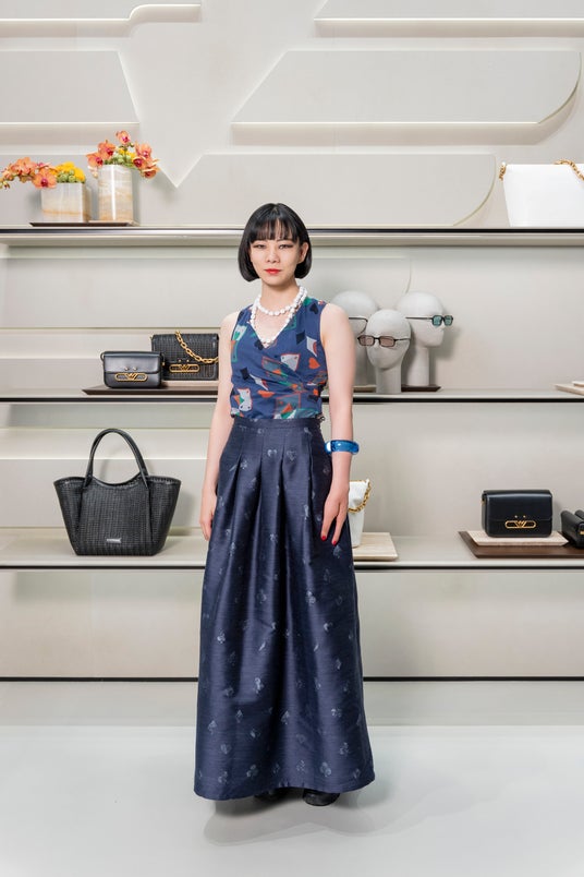 「エンポリオ アルマーニのすべての人にひらかれている姿、その姿勢に深く共感します。それは“イノベーション”とか“挑戦”“探求”“個性”“自由な精神”すべてのキーワードが体現されている姿だと思います。アーティストとして作品を世界に発表する上で、“ひらかれた表現”というのは一番大切なことだと思っていて、こうやってエレガントに美しく、そして日々に寄り添う表現ということに本当に心の底から憧れます。そして今日はいつもマニッシュなアイテムを選んでしまいがちなのですが、シルエットの美しいスカートに一瞬でとりこになってしまって、今回このスカートを選ばせていただきました。。」