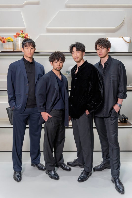 「エンポリオ アルマーニの姿勢は、歌舞伎と非常に通じるものがあると感じました。伝統的な型やスタイルを大切にしながらも、時代に合わせて進化し続ける点が共通していると思います。“型破り”は、まず型を身につけた上で成立するもので、基盤を持たずに新しいことをするのは“形無し”と言われます。その意味で、アルマーニもブランドの確固たるイメージを保ちつつ、革新を重ねている点に共感しました。自分自身も歌舞伎俳優という軸を持ちながら、映像やファッションなどの他分野へも挑戦させていただいています。それぞれを別ジャンルとは捉えず、すべてが一つの“表現”だと感じています。アルマーニのブランドにも、そうした境界を超える柔軟さや表現の幅を感じて、深く共鳴しました。」