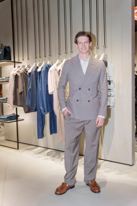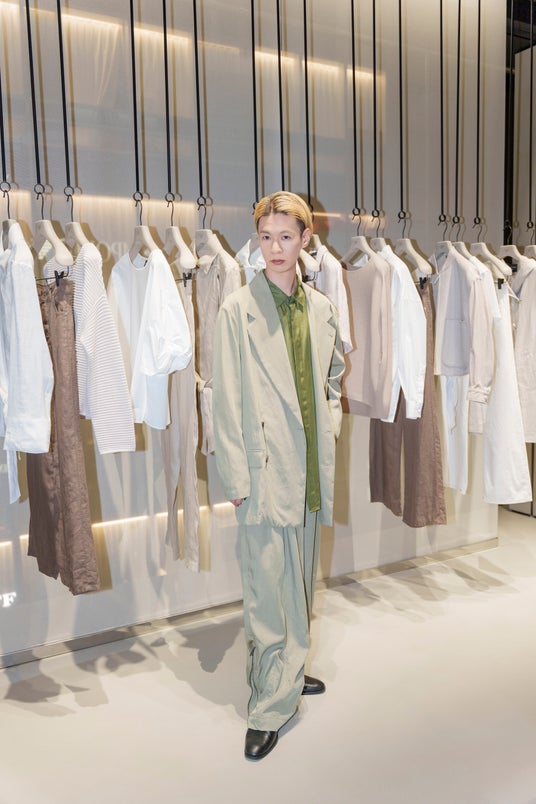 「自分の人生を振り返ると、自由や挑戦、自分らしさを大切にしてきたと感じます。その姿勢はエンポリオ アルマーニのブランドコンセプトと重なる部分が多く、アルマーニは挑戦する気持ちを後押ししてくれる存在だと思っています。また、節目のタイミングに、自分へのご褒美として身につけたいと思えるブランドでもあります。今回新店舗を訪れて、ブランドに抱いていたイメージと実際の空間やアイテムがしっかり重なり、改めて共感を深めることができました。」
