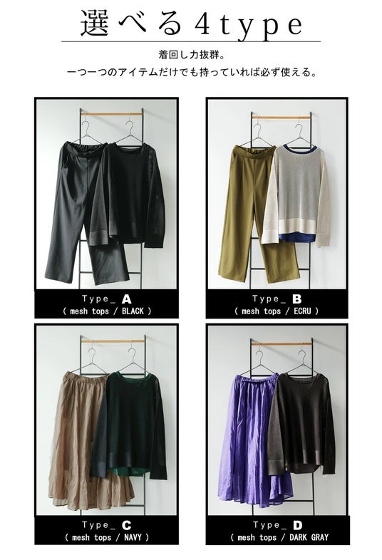 ■ Type_B(mesh tops / ECRU)柔らかなエクリュとカーキのコントラスト。