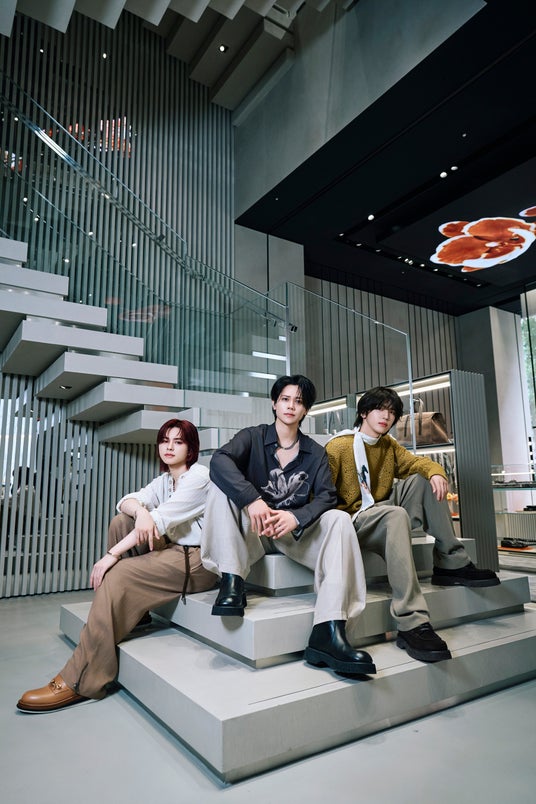 グローバルボーイズグループINIの高塚大夢さん、藤牧京介さん、松田迅さんが、エンポリオ アルマーニ 2025春夏メンズコレクションに身を包み、6月14日(土)東京・銀座 みゆき通りに新たにオープンしたエンポリオ アルマーニ 銀座店を訪れました。