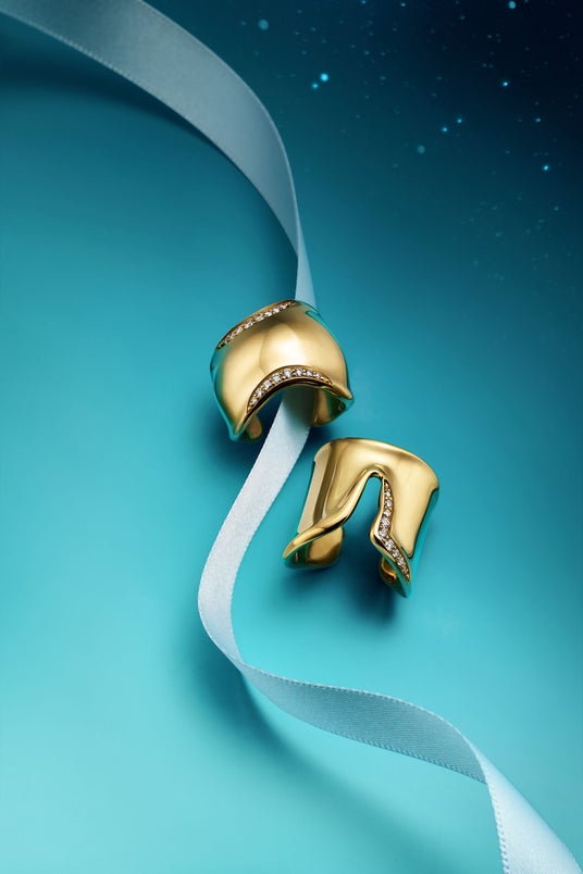 18Kイエローゴールドにダイヤモンドがあしらわれた ボーンリングとスプリット リングは、世界各国の一部のティファニー ストアおよび公式オンラインストアにて発売いたします。