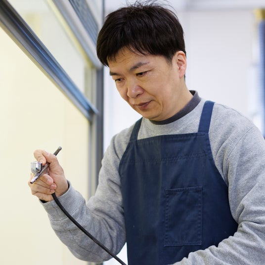 窯場チームリーダー 川口 敏明(かわぐち としあき)2004年「しん窯」入社後、成型部門のチームリーダーとして素地作りに研鑽を積んだ後、施釉、窯の焼成にも技能を高めてきました。2020年は佐賀県から有田焼ダイヤルの開発などで、第6回「佐賀さいこう企業」表彰の受賞に貢献し、同年第5回「佐賀ものづく