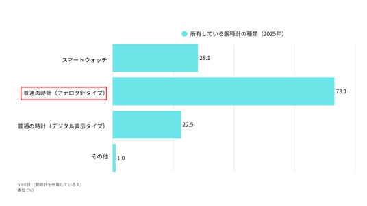 所有している腕時計の種類、第1位は「普通の時計(アナログ針タイプ)(73.1%)」で主流をキープ