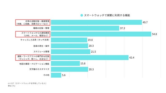 スマートウォッチで利用する機能、第1位は「通知確認(54.8%)」