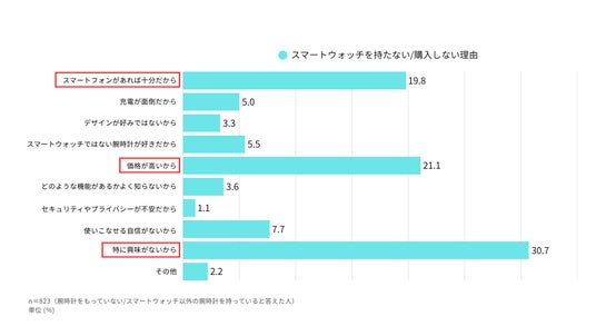 スマートウォッチを持たない理由、第1位は「特に興味がないから(30.7%)」