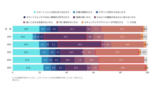 スマートウォッチを持たない/購入しない理由<年代別>(n=823)
