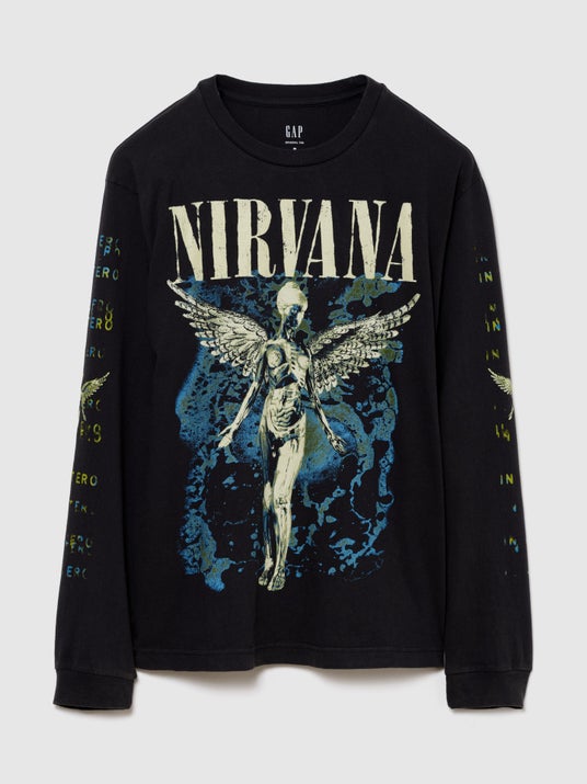 ビリー・アイリッシュは、フロントに「BILLIE EILISH」、バックには2024年に発売された3枚目のアルバム「HIT ME HARD AND SOFT」のアートワークをデザイン。U2は、1987年に発売された名盤「The Joshua Tree」のグラフィックをフィーチャーし、バックには収録曲をプリント。ビートルズは、Gapの創業年でもある1969年にリリースされた「Abbey Road」のジャケットをモノクロにした1枚。ニルヴァーナは、半袖TシャツとロングスリーブTシャツの2型がラインナップ。半袖Tシャツは、フロントにバンドを象徴するスマイリーフェイス、バックはアルバム「Nevermind」の収録曲をプリント。ロングスリーブTシャツは、アルバム「In Utero」からインスパイアされたデザイン。ビースティ・ボーイズは、3枚目のアルバムである「Check your head」のグラフィックが施されたTシャツが登場します。