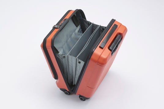 スーツケースを立てたまま開閉できるフロントポケットを搭載。ポケット内に小物収納に適したオープンポケットやPC収納部を備え、出張から旅行まで幅広く活用できます。